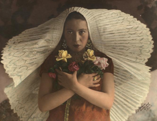 | Keywords: Handcoloredwomanholdingflower.jpg en Woman holding flowers in white headpiece Hand-colored photograph by Luis Marquez http //digital lib uh edu/u /p15195coll13 6 Luis Marquez 1937 This image is in the public domain and may be used freely If publishing in print electronically or on a website please use the citation Courtesy of Special Collections University of Houston Libraries To order a higher resolution reproduction see http //info lib uh edu/about/campus-libraries-collections/special-collections-archives/request-digital University of Houston Libraries Luis Marquez photographer Hand-colored photographs of Mexico Hand-colored photographs of women Women with flowers |