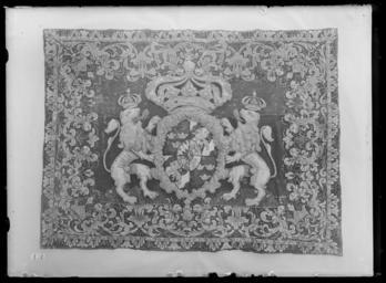 | Keywords: Handhästtäcke ur en svit om tolv med svenska riksvapnet. Tillhört Karl XI, beställda i Frankrike - Livrustkammaren - 9199.tif Rektangulärt täcke av blått kläde med applikationsbroderier av kläde i flera färger huvudsakligen gult och vitt samma typ som nr 4046 Ihopsytt av två tvärgående våder denövre har en bredd av 701 mm den nedre 1070 mm <br/><br/>Vapenbroderi b 1550 mm h 950 mm i hög relief högsta punkt ca 40 mm täckets bottentygunderlag för applikationer i yllekypert och schattersöm Kartusch av gul yllekypert medsnoddar läggsöm och schattersöm i gulbrunt med bruna konturer Kvadreradsköld fält 1 och4 tre kronor fält 2 och 3 folkungalejonet Hjärtsköld Bayern rutor av vitt och blått Juelich svart lejon på gult fält Cleve rött fält därpå vit sköld och därifrån utgåendegula liljestänglar Berg gult lejon på vitt fält mittsköld Pfalz gult lejon på svartfält Kartuschen krönt av kunglig krona med bottentyg av gul yllekypert på kronringen gråklumpsöm kantad med snoddar fem bladornament fyra synliga byglar kantade med snoddar riksäpple av gul och vit yllekypert Sköldhållare två krönta lejon med botten av gulyllekypert krönta med kronor av samma utförande som den stora kronan <br/><br/>Lejonens manar i schattersöm tungor av röd yllekypert med gles schattersöm i gult ochbrunt ullgarn kantade med brunt ullgarn fastsytt med läggsöm Tänderna saknas Svansar av10 mm tjock gulbrun snodd Lejonen står på var sitt applicerat postament av blå yllekypert enkelt broderat med gula blommor och gröna blad <br/><br/>Bård b 420 mm Längs kanterna är mönstret spegelvänt med omväxlande palmettmotiv ochöppna kronor i hörnen Varje sidas mittpalmett och kronorna omges av två gapandelejonhuvuden Palmetterna i applikationer av yllekypert i vitt gult och svart kantade medhöger- och vänstervridna snoddar i gult och svart ylle fastsydda med läggsöm Påapplikationerna sitter snoddar och schatteringar i gult brunt beige och grått ullgarn Ibårdens nedre del ett band i vit yllekypert med dekor i klumpsöm av gult ullgarn Över ochunder bandet slingrar liljeblad och blommor Kronorna och lejonhuvudena i relief h 10-15mm Gula prickar i plattsöm spridda mellan applikationerna <br/><br/>Foder av gråbrun jute gles tuskaft På fodret ett 60 mm brett kraftigt bomullsband och niolädertampar med mässingsringar längs överkanten original caption - 1671 1683 broadcloth Färg blå gul vit material kläde size mm 2400 1770 LRK Karl XI av Sverige place of origin original filename LN_B03521_006401 40686 inventory number LRK 4091 9199 CC0 Handhästtäcke ur en svit om tolv med svenska riksvapnet Tillhört Karl XI beställda i Frankrike - Livrustkammaren - 9199-negative tif <gallery caption Different images of same object > File Handhästtäcke sv riksvapen - Livrustkammaren - 17241 tif </gallery> Horse equipment Media contributed by LSH unmatched material Media contributed by LSH unmatched creator Horse tack images from Livrustkammaren Media contributed by LSH 2013-10 |