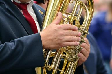 Keywords: hands musical instrument tuba brass band brass instrument wind instrument blowers traditionally music band brass music sheet golden gold customs orchestra shine