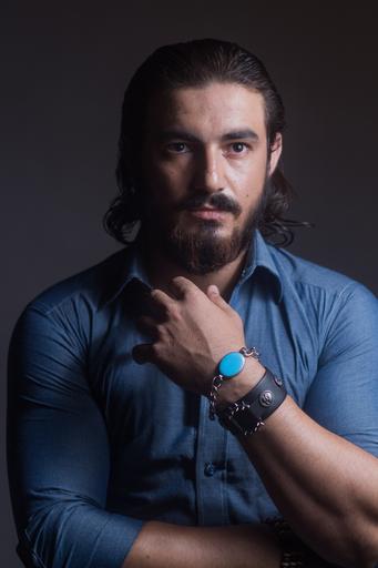 Keywords: handsome male person model urban lifestyle man beard long hair studio portrait