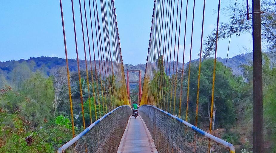 Keywords: hanging bridge bike rider rope bridge gangavali river ramanguli karnataka india