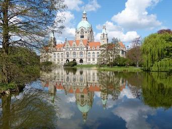 Keywords: hanover maschpark town hall lake pond mirroring dome architecture building germany facade places of interest tower