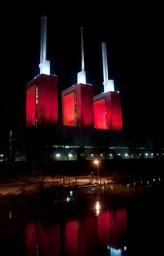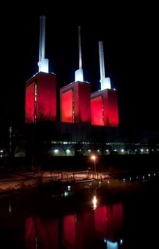 Keywords: hanover night lower saxony linden power plant lighting river city red architecture stadtwerke