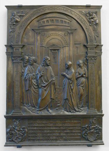 Keywords: Hans Vischer Christus und das kanaanäische Weib BNM.jpg Hans Vischer Christus und das kanaanäische Weib Matth 15 28 žDein Glaube ist groß ; Nürnberg 1543 Wiederholung des Epitaphs der Margarete Tucher im Dom zu Regensburg von 1521 gestiftet vom Pfalzgrafen Ottheinrich zur Erinnerung an die 1542 in Neuburg eingeführte Reformation ; Bronze Hans Vischer Christ and the woman of Canaan Mat 15 28 žGreat is thy faith Nuremberg 1543; bronze <br /><br /> Bayerisches Nationalmuseum München Inv Nr R 555 aus Schloss Neuburg an der Donau own Photo February 2007 Object Hans Vischer Photo Andreas Praefcke Public Domain by author Creator Hans Vischer Sculptures in the Bayerisches Nationalmuseum Bronze sculptures in Bavaria Neuburg an der Donau 1543 bronzes in Germany Jesus and the woman of Canaan Hans Vischer Coats of arms of Germany to be classified |