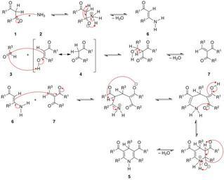 Keywords: Hantzsch Dihydropyridin Reaktion v2 Mechanismus.svg en Hantzsch-Dihydropyridine-Synthesis de Hantzsche-Dihydropyridin-Synthese own Ð”Ñ‘Ñ Ñ‚Ðµ Вилкен 2012-06-06 Hantzsch dihydropyridine synthesis Cc-zero