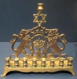 | Keywords: Hanukkah menorah, Russia, 1890, brass, National Museum of American Jewish History.JPG  en Hanukkah menorah Russia 1890 brass National Museum of American Jewish History own Wmpearl photo 2011 Cc-zero National Museum of American Jewish History Hanukiah |