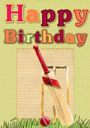Keywords: happy birthday card greeting green cricket bat boy sport celebration event happy birthday happy birthday card party design family fun gift colorful happiness humor joy joyful day invitation birthday card anniversary age drawing man men