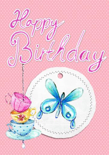 Keywords: happy birthday card greeting pink butterfly teacup girl celebration event happy birthday happy birthday card party cake design family fun gift colorful happiness humor joy joyful day invitation birthday card anniversary age drawing woman