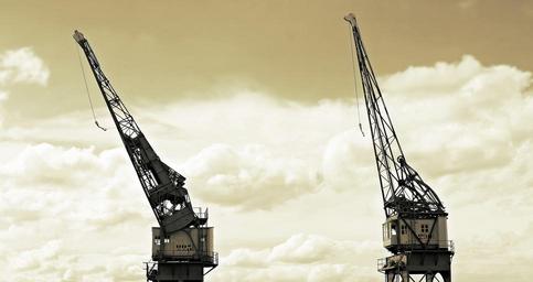 Keywords: harbour cranes sky clouds industry port cranes shipping loading cranes transport of goods transport general cargo loading unloading loading and unloading