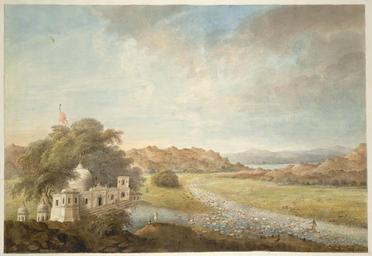 | Keywords: Hardwar and the beginning of the Ganges, 1814.jpg artwork Institution British Library Hardwar Haridwar and the beginning of the Ganges 1814 Watercolour of Haridwar from 'Views by Seeta Ram from Mohumdy to Gheen Vol V' produced for Lord Moira afterwards the Marquess of Hastings by Sita Ram between 1814-15 Marquess of Hastings the w Governor-General of India Governor-General of Bengal and the Commander-in-Chief r 1813-23 was accompanied by artist Sita Ram flourished c 1810-22 to illustrate his journey from Calcutta to Delhi between 1814-15 Haridwar located on the right bank of the Ganges river in Uttar Pradesh now Uttarakhand is known for the bathing ghat called Harikacharan or Vishnu's Footprint at the Gangadwara temple View of Haridwar and the beginning of the Ganges Inscribed below 'Hurdwar from the East ' http //www collectbritain co uk/personalisation/object cfm uid 019ADDOR0004780U00000000 British Library - Hardwar and the beginning of the Ganges 1814 Seeta Ram PD-old-100-1923 British Library India Office paintings and furniture collection Historical images of Haridwar 1814 in India 1810s paintings from India Sita Ram |