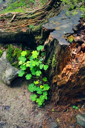 Keywords: hare clover trunk leaflet the bark new life spring happiness clover forest touchwood