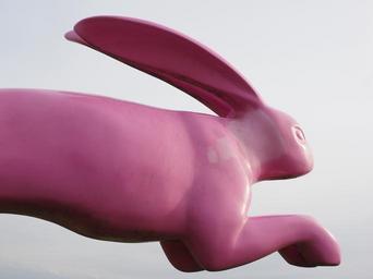 Keywords: hare jump bunny jump running away bounce away pink artwork seat and flitz rabbits rosalie madaris ostfildern esslingen scharnhauser park giant rabbits colorful art modern art art object object art