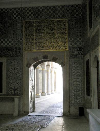 | Keywords: Harem entrance Topkapi Istanbul 2007 74.JPG entrance area and hall of the Harem in Topkapi Palace in Istanbul The middle way was reserved for the Sultan and his horse Own 2007-08 Gryffindor Ottoman inscriptions in Istanbul Hall of the Ablution Fountain Topkapı Palace |