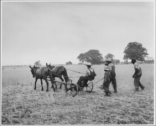 | Keywords: Harmony Community, Putnam County, Georgia.... Binders are not uncommon on large farms, but those who . . . - NARA - 521330.tif Scope and content Full caption reads as follows Harmony Community Putnam County Georgia Binders are not uncommon on large farms but those who can handle all their small grains by hand continue to do so These African-American tenants have made a sort of mechanical cradle out of an old mowing machine with a piece of corrugated iron rigged behind the cutter bar to catch the fallen stalks One man walks along side with a stick and sweeps the standing grain back over the cutter while two others pick it out of the tin cradle and bind it General notes 521330 Local identifier 83-G-41017 Department of Agriculture Bureau of Agricultural Economics Division of Economic Information ca 1922 - ca 1953 NARA-Author Rusinow Irving Photographer 5307166 <br /> Still Picture Records Section Special Media Archives Services Division NWCS-S National Archives at College Park 8601 Adelphi Road College Park MD 20740-6001 1941 05 28 - 1941 06 01 Record group Record Group 83 Records of the Bureau of Agricultural Economics 1876 - 1959 Record group ARC 412 Photographic Prints Documenting Programs and Activities of the Bureau of Agricultural Economics and Predecessor Agencies compiled ca 1922 - ca 1947 documenting the period ca 1911 - ca 1947 Series ARC 521048 File unit File unit ARC Variant control numbers NAIL Control Number NWDNS-83-G-41017 yes Other versions <gallery> File Harmony_Community _Putnam_County _Georgia _Binders_are_not_uncommon_on_large_farms _but_those_who_ _ _ _-_NARA_-_521330 tif tif File Harmony_Community _Putnam_County _Georgia _Binders_are_not_uncommon_on_large_farms _but_those_who_ _ _ _-_NARA_-_521330 jpg jpg </gallery> NARA-cooperation PD-USGov Irving Rusinow Putnam County Georgia NARA TIF images with categorized JPGs |