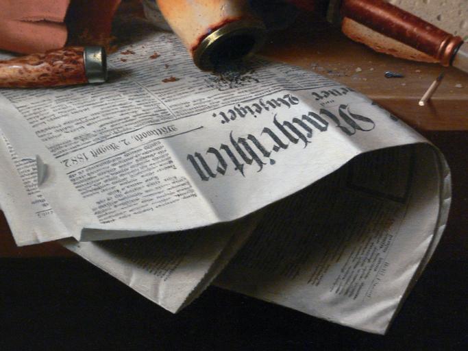 | Keywords: Harnett Munich Still Life detail DMA.jpg Artwork Creator William Michael Harnett Detail newspaper 1882 Oil on canvas 62 5 x 76 4 cm Institution Dallas Museum of Art Dallas Texas accession number 1953 56 object history credit line Dallas Art Association Purchase own Photo by User FA2010 2009-10 PD-Art-100 <gallery> File Harnett Munich Still Life DMA jpg </gallery> Paintings in the Dallas Museum of Art William Michael Harnett 1882 paintings Newspapers in art | ||||