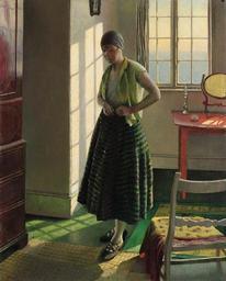Keywords: Harold Harvey Gertrude in an Interior 1929.jpg Gertrude in an Interior Signed and dated Harold Harvey 29 Oil on canvas 76 2 x 61 cm Christie's online 1365945 1929 Creator Harold Harvey PD-old-auto 1941 Harold Harvey 1929 paintings People in rooms in art Temporary for Cat-a-lot - Female humans Self care Standing Kerchiefs in art Domestic interiors in art Dressing tables Paintings of women standing indoors |