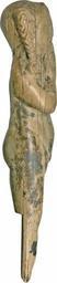 | Keywords: Harpocrates - Walters 71506 - Right.jpg This finely modeled figure of the young god Horus-the-Child called Harpocrates by the Greeks shows him as ususal sucking his finger He wears the typical juvenile sidelock but also has short curly hair indicated by fine incised lines Teh deep-set eyes reveal the influence of Greek art on late representations of this well-known Egyptian god The legs and left arm are damaged century 4 1 BC Greco-Roman hippopotamus ivory cm 0 82 2 1 12 accession number 71 506 12603 Said to be 22nd Dynasty found near Alexandria Dikran Kelekian New York and Paris date and mode of acquisition unknown Henry Walters city Baltimore Walters Art Museum Henry Walters Acquired by Henry Walters 1923 place of origin Egypt Walters Art Museum license Ancient Egyptian statuettes in the Walters Art Museum Statues of the Ptolemaic dynasty Statuettes of Harpocrates Media contributed by the Walters Art Museum needs category review |