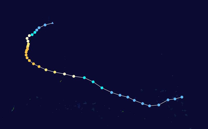 Keywords: Harriet 1967 track.png WPTC track map Supportstorm Typhoon Harriet Typhoon Harriet 1967 1967 Pacific typhoon season 1967-11-15 1967-11-24 IBTrACS 1967 Pacific typhoon season track maps /track --id 51 --name HARRIET --year 1967 --format hurdat2 --input WPACHURDAT2 WP511967 HARRIET 37 19671115 1800 TD 10 0N 171 0E 30 1006 -999 -999 -999 -999 -999 -999 -999 -999 -999 -999 -999 -999 19671116 0000 TD 9 6N 169 5E 30 1008 -999 -999 -999 -999 -999 -999 -999 -999 -999 -999 -999 -999 19671116 0600 TD 9 4N 168 0E 30 1006 -999 -999 -999 -999 -999 -999 -999 -999 -999 -999 -999 -999 19671116 1200 TD 8 3N 166 0E 30 1006 -999 -999 -999 -999 -999 -999 -999 -999 -999 -999 -999 -999 19671116 1800 TD 8 1N 164 0E 30 1006 -999 -999 -999 -999 -999 -999 -999 -999 -999 -999 -999 -999 19671117 0000 TD 8 6N 162 5E 30 1006 -999 -999 -999 -999 -999 -999 -999 -999 -999 -999 -999 -999 19671117 0600 TD 9 3N 160 7E 30 1006 -999 -999 -999 -999 -999 -999 -999 -999 -999 -999 -999 -999 19671117 1200 TD 10 0N 159 3E 30 1006 -999 -999 -999 -999 -999 -999 -999 -999 -999 -999 -999 -999 19671117 1800 TD 10 4N 157 6E 30 1004 -999 -999 -999 -999 -999 -999 -999 -999 -999 -999 -999 -999 19671118 0000 TD 11 0N 155 8E 30 999 -999 -999 -999 -999 -999 -999 -999 -999 -999 -999 -999 -999 19671118 0600 TS 12 0N 153 7E 35 998 -999 -999 -999 -999 -999 -999 -999 -999 -999 -999 -999 -999 19671118 1200 TS 13 3N 151 8E 45 987 -999 -999 -999 -999 -999 -999 -999 -999 -999 -999 -999 -999 19671118 1800 TS 14 2N 149 9E 55 983 -999 -999 -999 -999 -999 -999 -999 -999 -999 -999 -999 -999 19671119 0000 TY 14 5N 147 6E 65 983 -999 -999 -999 -999 -999 -999 -999 -999 -999 -999 -999 -999 19671119 0600 TY 15 0N 145 6E 75 978 -999 -999 -999 -999 -999 -999 -999 -999 -999 -999 -999 -999 19671119 1200 TY 15 4N 143 5E 85 976 -999 -999 -999 -999 -999 -999 -999 -999 -999 -999 -999 -999 19671119 1800 TY 15 9N 141 6E 90 968 -999 -999 -999 -999 -999 -999 -999 -999 -999 -999 -999 -999 19671120 0000 TY 16 6N 140 1E 100 965 -999 -999 -999 -999 -999 -999 -999 -999 -999 -999 -999 -999 19671120 0600 TY 17 2N 138 9E 100 965 -999 -999 -999 -999 -999 -999 -999 -999 -999 -999 -999 -999 19671120 1200 TY 17 9N 138 0E 105 960 -999 -999 -999 -999 -999 -999 -999 -999 -999 -999 -999 -999 19671120 1800 TY 18 5N 137 5E 105 957 -999 -999 -999 -999 -999 -999 -999 -999 -999 -999 -999 -999 19671121 0000 TY 19 1N 137 3E 110 953 -999 -999 -999 -999 -999 -999 -999 -999 -999 -999 -999 -999 19671121 0600 TY 19 7N 137 3E 105 962 -999 -999 -999 -999 -999 -999 -999 -999 -999 -999 -999 -999 19671121 1200 TY 20 1N 137 4E 105 967 -999 -999 -999 -999 -999 -999 -999 -999 -999 -999 -999 -999 19671121 1800 TY 20 4N 137 6E 100 967 -999 -999 -999 -999 -999 -999 -999 -999 -999 -999 -999 -999 19671122 0000 TY 20 8N 137 6E 100 966 -999 -999 -999 -999 -999 -999 -999 -999 -999 -999 -999 -999 19671122 0600 TY 21 1N 137 7E 95 968 -999 -999 -999 -999 -999 -999 -999 -999 -999 -999 -999 -999 19671122 1200 TY 21 5N 137 8E 90 976 -999 -999 -999 -999 -999 -999 -999 -999 -999 -999 -999 -999 19671122 1800 TY 22 1N 137 7E 80 976 -999 -999 -999 -999 -999 -999 -999 -999 -999 -999 -999 -999 19671123 0000 TY 22 7N 137 5E 75 977 -999 -999 -999 -999 -999 -999 -999 -999 -999 -999 -999 -999 19671123 0600 TY 23 3N 138 0E 65 987 -999 -999 -999 -999 -999 -999 -999 -999 -999 -999 -999 -999 19671123 1200 TS 23 5N 138 6E 45 994 -999 -999 -999 -999 -999 -999 -999 -999 -999 -999 -999 -999 19671123 1800 TS 24 0N 139 2E 35 1003 -999 -999 -999 -999 -999 -999 -999 -999 -999 -999 -999 -999 19671124 0000 TD 24 5N 139 6E 30 1006 -999 -999 -999 -999 -999 -999 -999 -999 -999 -999 -999 -999 19671124 0600 TD 25 0N 140 1E 30 1010 -999 -999 -999 -999 -999 -999 -999 -999 -999 -999 -999 -999 19671124 1200 TD 25 6N 141 4E 25 1014 -999 -999 -999 -999 -999 -999 -999 -999 -999 -999 -999 -999 19671124 1800 LO 26 0N 143 0E 20 1014 -999 -999 -999 -999 -999 -999 -999 -999 -999 -999 -999 -999 |