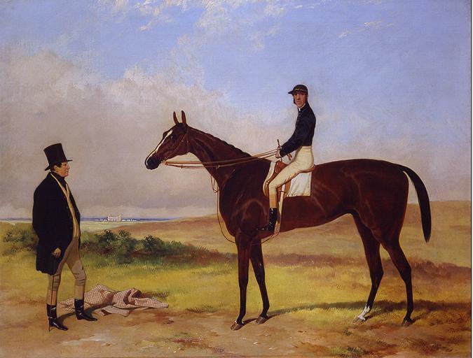 Keywords: Harry Hall West Australian.PNG Harry Hall 1816 - 1882 West Australian with Jockey Up Trainer Oil on canvas 23 x 30 inches Signed inscribed and dated 1853 West Australian was the first horse to win the Triple Crown in England Winner Derby 1853 St Leger 1853 The Ascot Gold Cup 1853 http //www rehs com/view_image html image_no 73 1853 Harry Hall old Harry Hall PD-old |