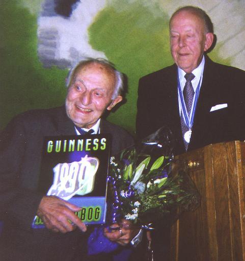 Keywords: Harry-meistrup-guinness.jpg Harry Meistrup 1899-2004 modtager på KB Guiness Rekordbog 1999 hvori han er optaget som Verdens ældste tennisspiller Harry Meistrup 1899-2004 recieves Guiness Book of Records 1999 awarded as the oldest tennisplayer in the World 2012-02-18 own Per Meistrup cc-zero Uploaded with UploadWizard Tennis players from Denmark |