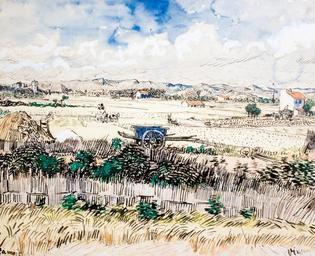 Keywords: Harvest Landscape - My Dream.jpg Artwork Creator Vincent van Gogh Arles June 1888 oil canvas digital reconstruction of the original colours private collection Van Gogh catalogues 1439 object history credit line Photo by Szilas at the Van Gogh My Dream Exhibition in Budapest 2013 Other versions PD-old-100 Commonist Paintings of wheat fields Landscape paintings by Vincent Van Gogh Arles 1888 Paintings by Vincent van Gogh in private collections Van Gogh My Dream Exhibition |