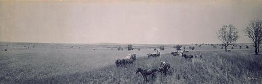 Keywords: melvin vaniman melvin vaniman melvinvaniman photography panorama state library statelibrary grenfell 1903 brundah station stripper state library of new south wales statelibraryofnewsouthwales outdoor A procession of horse drawn strippers harvest a record crop from the 5000 acres under cultivation on John and Philip Wood's sheep and wheat property. The Ridley stripper was an Australian invention that removed the seed from standing wheat using a comb and rotating bars, and stored it in the 'boot' of the machine for later winnowing. Find more information about the Melvin Vaniman collection of photographic panoramas in the State Library of New South Wales' catalogue: acms.sl.nsw.gov.au/item/itemdetailpaged.aspx?itemid=413018 A procession of horse drawn strippers harvest a record crop from the 5000 acres under cultivation on John and Philip Wood's sheep and wheat property. The Ridley stripper was an Australian invention that removed the seed from standing wheat using a comb and rotating bars, and stored it in the 'boot' of the machine for later winnowing. Find more information about the Melvin Vaniman collection of photographic panoramas in the State Library of New South Wales' catalogue: acms.sl.nsw.gov.au/item/itemdetailpaged.aspx?itemid=413018 |