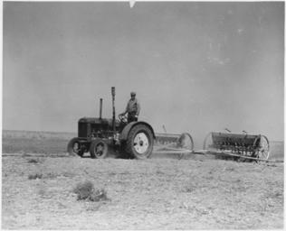 | Keywords: Haskell County, Kansas. Some of the land is planted to small grains (often barley) and sorghums are . . . - NARA - 522097.jpg Scope and content Full caption reads as follows Haskell County Kansas Some of the land is planted to small grains often barley and sorghums are put in in May though it is believed by the county agent that planting should be delayed until June This man is drilling barley General notes 522097 Local identifier 83-G-41908 Department of Agriculture Bureau of Agricultural Economics Division of Economic Information ca 1922 - ca 1953 NARA-Author Rusinow Irving Photographer 5307166 <br /> Still Picture Records Section Special Media Archives Services Division NWCS-S National Archives at College Park 8601 Adelphi Road College Park MD 20740-6001 1941-04 Record group Record Group 83 Records of the Bureau of Agricultural Economics 1876 - 1959 Record group ARC 412 Photographic Prints Documenting Programs and Activities of the Bureau of Agricultural Economics and Predecessor Agencies compiled ca 1922 - ca 1947 documenting the period ca 1911 - ca 1947 Series ARC 521048 File unit File unit ARC Variant control numbers NAIL Control Number NWDNS-83-G-41908 Other versions <gallery> File Haskell_County _Kansas _Some_of_the_land_is_planted_to_small_grains_ often_barley _and_sorghums_are_ _ _ _-_NARA_-_522097 tif tif File Haskell_County _Kansas _Some_of_the_land_is_planted_to_small_grains_ often_barley _and_sorghums_are_ _ _ _-_NARA_-_522097 jpg jpg </gallery> NARA-cooperation PD-USGov Irving Rusinow Haskell County Kansas Agriculture in Kansas Tractors in the United States McCormick tractors Seed drills |