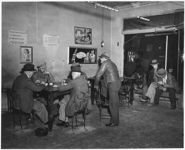 Keywords: Haskell County, Kansas. Sublette's Pool Hall. Recreation is limited in this region, though now that . . . - NARA - 522155.tif Scope and content Full caption reads as follows Haskell County Kansas Sublette's Pool Hall Recreation is limited in this region though now that most families have cars many of them drive to the larger towns outside the county to see movies In Sublette people meet either here or in the back part of one of the drugstores There is a domino game going in both almost every night The pool hall draws more people because it offers a choice of dominoes or pool; also most of the drug-store crowd are younger people Beer is sold here but most of the people are more inclined to stick to soft drinks Liquor is illegal in the state but Sublette has its bootlegger as do most other towns in Kansas General notes 522155 Local identifier 83-G-41966 Department of Agriculture Bureau of Agricultural Economics Division of Economic Information ca 1922 - ca 1953 NARA-Author Rusinow Irving Photographer 5307166 <br /> Still Picture Records Section Special Media Archives Services Division NWCS-S National Archives at College Park 8601 Adelphi Road College Park MD 20740-6001 04/1941 Record group Record Group 83 Records of the Bureau of Agricultural Economics 1876 - 1959 Record group ARC 412 Photographic Prints Documenting Programs and Activities of the Bureau of Agricultural Economics and Predecessor Agencies compiled ca 1922 - ca 1947 documenting the period ca 1911 - ca 1947 Series ARC 521048 File unit File unit ARC Variant control numbers NAIL Control Number NWDNS-83-G-41966 yes Other versions <gallery> File Haskell_County _Kansas _Sublette's_Pool_Hall _Recreation_is_limited_in_this_region _though_now_that_ _ _ _-_NARA_-_522155 tif tif File Haskell_County _Kansas _Sublette's_Pool_Hall _Recreation_is_limited_in_this_region _though_now_that_ _ _ _-_NARA_-_522155 jpg jpg </gallery> NARA-cooperation PD-USGov Irving Rusinow Haskell County Kansas NARA TIF images with categorized JPGs |