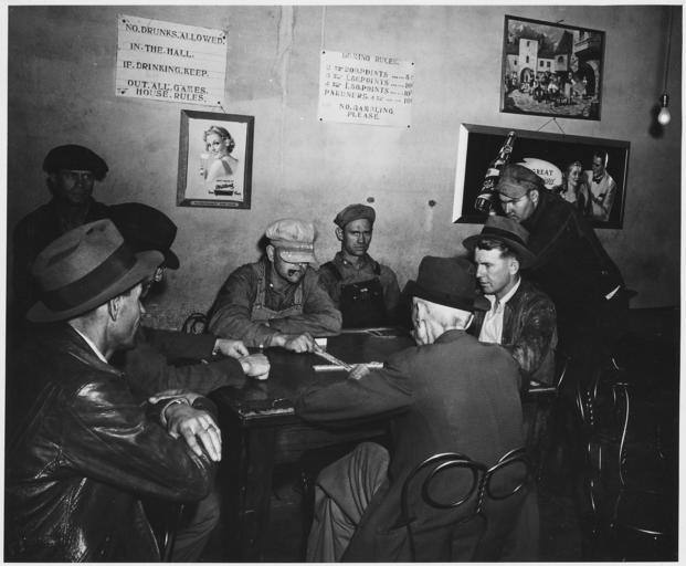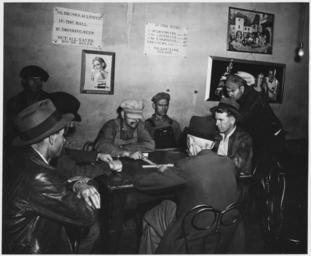 Keywords: Haskell County, Kansas. Sublette's Pool Hall. Recreation is limited in this region, though now that . . . - NARA - 522154.jpg Scope and content Full caption reads as follows Haskell County Kansas Sublette's Pool Hall Recreation is limited in this region though now that most families have cars many of them drive to the larger towns outside the county to see movies In Sublette people meet either here or in the back part of one of the drugstores There is a domino game going in both almost every night The pool hall draws more people because it offers a choice of dominoes or pool; also most of the drug-store crowd are younger people General notes 522154 Local identifier 83-G-41965 Department of Agriculture Bureau of Agricultural Economics Division of Economic Information ca 1922 - ca 1953 NARA-Author Rusinow Irving Photographer 5307166 <br /> Still Picture Records Section Special Media Archives Services Division NWCS-S National Archives at College Park 8601 Adelphi Road College Park MD 20740-6001 04/1941 Record group Record Group 83 Records of the Bureau of Agricultural Economics 1876 - 1959 Record group ARC 412 Photographic Prints Documenting Programs and Activities of the Bureau of Agricultural Economics and Predecessor Agencies compiled ca 1922 - ca 1947 documenting the period ca 1911 - ca 1947 Series ARC 521048 File unit File unit ARC Variant control numbers NAIL Control Number NWDNS-83-G-41965 Other versions <gallery> File Haskell_County _Kansas _Sublette's_Pool_Hall _Recreation_is_limited_in_this_region _though_now_that_ _ _ _-_NARA_-_522154 tif tif File Haskell_County _Kansas _Sublette's_Pool_Hall _Recreation_is_limited_in_this_region _though_now_that_ _ _ _-_NARA_-_522154 jpg jpg </gallery> NARA-cooperation PD-USGov Irving Rusinow Haskell County Kansas |