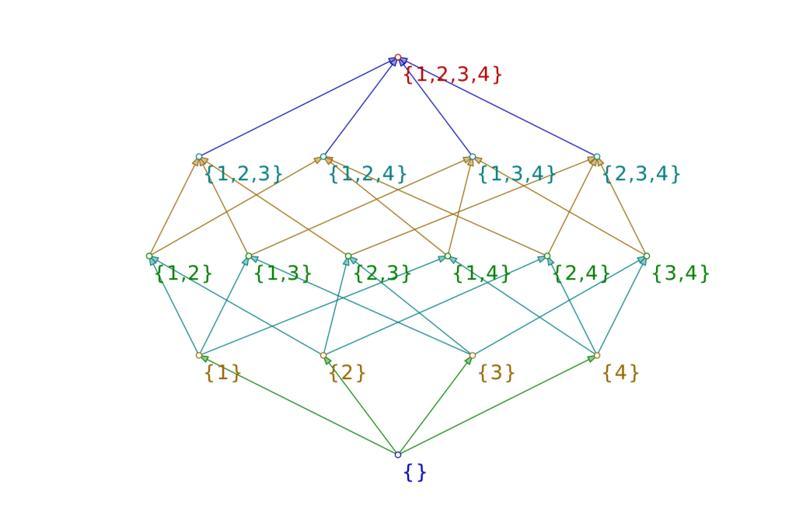 Keywords: Hasse4die.svg Hasse diagramm for the Boole algebra of a tetrahedral die own 2011-05-11 Alain Busser Cc-zero Check categories 2011 May 12 fr wikipedia Algèbre_de_Lindenbaum 1 Algebra