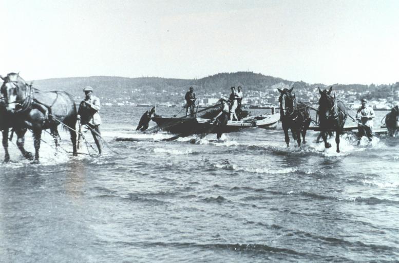 | Keywords: Hauling in beach seine using horse teams.jpg en Hauling in beach seine from the Columbia River by horse teams F WL 12 496 Image ID fish1354 NOAA's Historic Fisheries Collection Location Oregon Astoria Photo Date 1938 Ca 2012-03-22 http //www photolib noaa gov/htmls/fish1354 htm NOAA Photo Library Photographer Archival photograph by Mr Sean Linehan NOS NGS PD-USGov Uploaded with UploadWizard Salmon fishing Beach seines | ||||