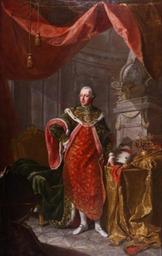 Keywords: Hauzinger - Joseph II as Grand Master of the Order of Saint Stephen of Hungary.jpg Artwork 1773 Oil on canvas cm 306 189 2 Institution Hungarian National Museum Budapest Historical Picture Gallery Inv 2076 http //www mke hu/node/33911 other versions PD-old-100 Josef Hauzinger 18th-century portrait paintings in the Historical Picture Gallery Budapest Portrait paintings of Joseph II Holy Roman Emperor 1773 1773 oil on canvas paintings Portrait 1773 portrait paintings Male 18th-century oil portraits of standing men at full length in ceremonial robes 1773 Ceremonial robes of the Order of St Stephen of Hungary 1773 Portrait paintings of men with crowns on cushions 1773 Portrait paintings of standing men with hands resting on tables 1773 Red drapery in portrait paintings 1773 Right hand on hip in portrait paintings 1773 Sceptres in portrait paintings 1773 Tassels in portrait paintings 1773 |