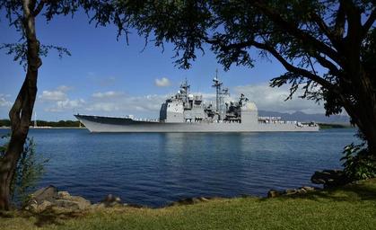 Keywords: hawaii ship battleship navy military bay harbor inlet water nature outside shoreline trees grass reflections beautiful