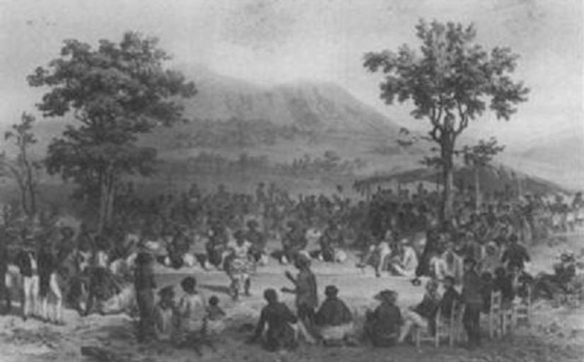 | Keywords: Hawaiian hula performance in 1837.jpg en An artist's rendering of a Hawaiian hula performance presented during the visit of the French ship Bonite in 1837 shows the female dancers now covered in European-style clothing likely indicative of the missionary influence on women's clothes and customs http //hdl handle net/10524/347 Hawaiian Journal of History page 32 of volume 34 2000 article Kanawai E Ho'opau I Na Hula Kuolo Hawai'i the Political Economy of Banning the Hula by Noenoe K Silva credited to Hawaiian Historical Society 1837 Historical images of hula Native Hawaiians in art 1837 in Hawaii PD-old-100 |