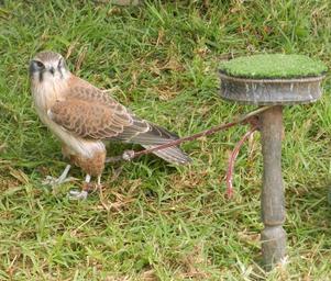 Keywords: hawk tethered restrained grass bird flight standing tied prey predator raptor animal falcon wildlife hunter feather avian