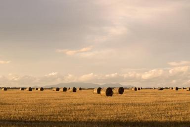 Keywords: hay bales straw crop field farm agriculture harvest harvesting horizon country countryside wheatbelt land afternoon summer rural outdoor farming farmland
