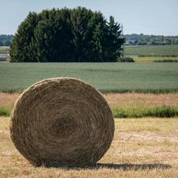 Keywords: hay hay bales bale harvest round bales winter feed cattle feed dried grass straw bales straw agriculture forest trees field harvested