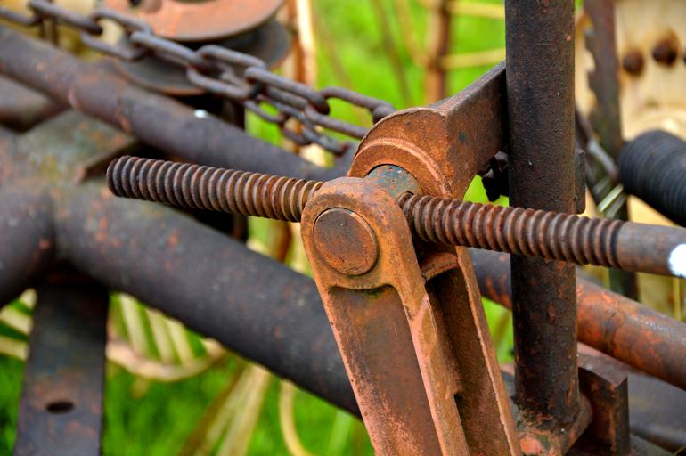 Keywords: hay tedders detail agricultural machine agriculture technology screw fixing rusty obsolete drive gear stock ailing design graphic close