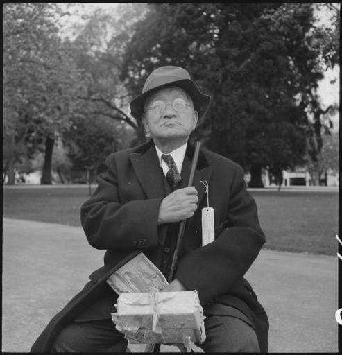| Keywords: Hayward, California. Grandfather of Japanese ancestry waiting at local park for the arrival of evac . . . - NARA - 537511.jpg Scope and content The full caption for this photograph reads Hayward California Grandfather of Japanese ancestry waiting at local park for the arrival of evacuation bus which will take him and other evacuees to the Tanforan Assembly center He was engaged in the Cleaning and Dyeing business in Hayward for many years General notes 537511 Local identifier 210-G-C161 Department of the Interior War Relocation Authority 02/16/1944 - 06/30/1946 NARA-Author Lange Dorothea 1895-1965 Photographer 1372774 <br /> Still Picture Records Section Special Media Archives Services Division NWCS-S National Archives at College Park 8601 Adelphi Road College Park MD 20740-6001 1942-05-08 Record group Record Group 210 Records of the War Relocation Authority 1941 - 1989 Record group ARC 537 Central Photographic File of the War Relocation Authority compiled 1942 - 1945 Series ARC 536000 File unit File unit ARC Variant control numbers NAIL Control Number NWDNS-210-G-C161 Other versions <gallery> File Hayward _California _Grandfather_of_Japanese_ancestry_waiting_at_local_park_for_the_arrival_of_evac_ _ _ _-_NARA_-_537511 tif tif File Hayward _California _Grandfather_of_Japanese_ancestry_waiting_at_local_park_for_the_arrival_of_evac_ _ _ _-_NARA_-_537511 jpg jpg </gallery> NARA-cooperation PD-USGov Dorothea Lange Japanese American internment processing in Hayward 1942 in California Grandfathers 20th-century men of the United States People of the United States in 1942 Fedora Men with hats Sitting men Old men of the United States Men with glasses |