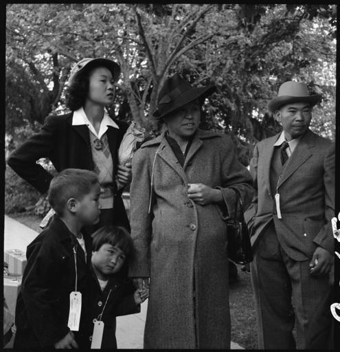 | Keywords: Hayward, California. This family is awaiting evacuation bus. Each person carries an identification . . - NARA - 537502.jpg Scope and content The full caption for this photograph reads Hayward California This family is awaiting evacuation bus Each person carries an identification tag to assure keeping the family units intact and to prevent straying of children Evacuees of Japanese descent will be housed in War Relocation Authority centers for the duration General notes 537502 Local identifier 210-G-C150 Department of the Interior War Relocation Authority 02/16/1944 - 06/30/1946 NARA-Author Lange Dorothea 1895-1965 Photographer 1372774 <br /> Still Picture Records Section Special Media Archives Services Division NWCS-S National Archives at College Park 8601 Adelphi Road College Park MD 20740-6001 1942-05-08 Record group Record Group 210 Records of the War Relocation Authority 1941 - 1989 Record group ARC 537 Central Photographic File of the War Relocation Authority compiled 1942 - 1945 Series ARC 536000 File unit File unit ARC Variant control numbers NAIL Control Number NWDNS-210-G-C150 Other versions <gallery> File Hayward _California _This_family_is_awaiting_evacuation_bus _Each_person_carries_an_identification_ _ _-_NARA_-_537502 tif tif File Hayward _California _This_family_is_awaiting_evacuation_bus _Each_person_carries_an_identification_ _ _-_NARA_-_537502 jpg jpg </gallery> NARA-cooperation PD-USGov Japanese American internment processing in Hayward Dorothea Lange People of the United States in 1942 Families of the United States Women with hats Men with hats Black and white photographs of families |