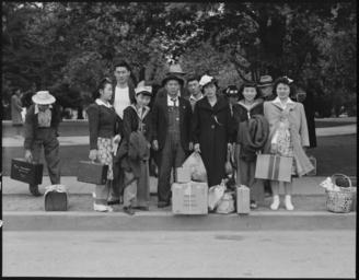 Keywords: Hayward, California. This farm family await evacuation bus. Father and mother immigrated from Japa . . . - NARA - 537508.jpg Scope and content The full caption for this photograph reads Hayward California This farm family await evacuation bus Father and mother immigrated from Japan and their eleven children were born in the United States The father operated a small operated a small farm growing tomatoes and berries Evacuees of Japanese ancestry will be housed at War Relocation Authority centers for the duration General notes 537508 Local identifier 210-G-C156 Department of the Interior War Relocation Authority 02/16/1944 - 06/30/1946 NARA-Author Lange Dorothea 1895-1965 Photographer 1372774 <br /> Still Picture Records Section Special Media Archives Services Division NWCS-S National Archives at College Park 8601 Adelphi Road College Park MD 20740-6001 1942-05-08 Record group Record Group 210 Records of the War Relocation Authority 1941 - 1989 Record group ARC 537 Central Photographic File of the War Relocation Authority compiled 1942 - 1945 Series ARC 536000 File unit File unit ARC Variant control numbers NAIL Control Number NWDNS-210-G-C156 Other versions <gallery> File Hayward _California _This_farm_family_await_evacuation_bus _Father_and_mother_immigrated_from_Japa_ _ _ _-_NARA_-_537508 tif tif File Hayward _California _This_farm_family_await_evacuation_bus _Father_and_mother_immigrated_from_Japa_ _ _ _-_NARA_-_537508 jpg jpg </gallery> NARA-cooperation PD-USGov Dorothea Lange Japanese American internment processing in Hayward 1942 in California Families of the United States Farmers from the United States Overalls People of the United States in 1942 Women with hats Men with hats