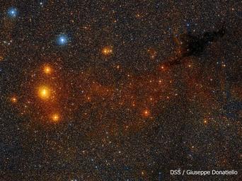 | Keywords: vela constellation Around HD 85622 Velorum Credit: DSS / Giuseppe Donatiello (J2000) RA 09h 51m 40.66814s Dec −46° 32′ 51.4376″ HD 85622 (also known as m Velorum) is a young yellow supergiant star in Vela at 1050 light-years. Its apparent magnitude is 4.59. Around HD 85622 Velorum Credit: DSS / Giuseppe Donatiello (J2000) RA 09h 51m 40.66814s Dec −46° 32′ 51.4376″ HD 85622 (also known as m Velorum) is a young yellow supergiant star in Vela at 1050 light-years. Its apparent magnitude is 4.59. |