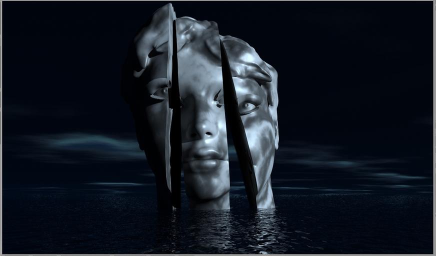| Keywords: head 3d face woman's head woman's face statue marble allegorical representations 3 divided into three parts inner conflict psycho psychosis psychiatry depression therapy headache problem problem solution weird surreal surrealism computer graphics night sky dark clouds wolkenwand moonlight cold lighting at night night lake waters water surface wave mirroring reflexes reflections dream nightmare fear anxiety destruction | ||||