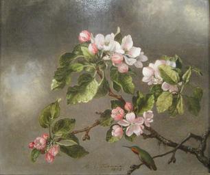 | Keywords: Heade Martin Johnson Hummingbird And Apple Blossoms.jpg Artwork Hummingbird and Apple Blossoms Creator Martin Johnson Heade oil canvas cm institution Metropolitan Museum of Art http //www metmuseum org/Collections/search-the-collections/20011407 accession 1979 490 11 bottom center M J Heade / 1875 object history Provenance unknown credit line photo by uploader 1875 PD-old-100 Other versions 1870s paintings by Martin Johnson Heade Oil paintings of flowers 1875 paintings Oil paintings of birds American paintings in the Metropolitan Museum of Art Heade Hummingbirds in art Heade Apple blossoms in art Heade |