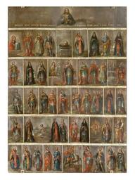 | Keywords: Healing saints (Russia, 19th c., Atheism museum).jpg Икона «Каким святым от каких болезней молиться и когда память их»/ Госуда ственный музей исто ии елигии Изоб ажение святых в пять ядов в клеймах с надписями над клеймами какому святому следует молиться п и какой болезни или же житейской нужде или п облеме Вве ху об аз благословляющего Х иста Т адиция об ащения к святому за исцелением и конк етной помощью складывалась исходя из событий ассказанных в житии самого святого или в повествовании о его посме тных чудесах и явлениях http //vm1 culture ru/muzey_istorii_religii/catalog/0002500409/ XIX в Россия 19 Icons in Museum of history of religion Files uploaded by Shakko from various sources Multiple-images icons Icons of saints Healing in Christianity PD-old |