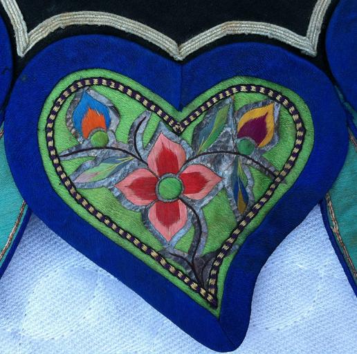 Keywords: heart blue red love romantic romance valentine embroidered fabric flowers abstract design textile hand embroidery