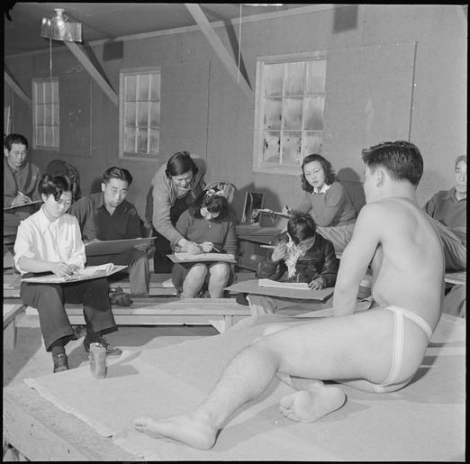 | Keywords: Heart Mountain Relocation Center, Heart Mountain, Wyoming. Benji Okuda instructing a life class, an . . . - NARA - 539164.tif Scope and content The full caption for this photograph reads Heart Mountain Relocation Center Heart Mountain Wyoming Benji Okuda instructing a life class an adult night school group at the Heart Mountain Relocation Center General notes 539164 Local identifier 210-G-E606 Department of the Interior War Relocation Authority 02/16/1944 - 06/30/1946 NARA-Author Parker Tom Photographer 4682167 <br /> Still Picture Records Section Special Media Archives Services Division NWCS-S National Archives at College Park 8601 Adelphi Road College Park MD 20740-6001 1943-01-11 Record group Record Group 210 Records of the War Relocation Authority 1941 - 1989 Record group ARC 537 Central Photographic File of the War Relocation Authority compiled 1942 - 1945 Series ARC 536000 File unit File unit ARC Variant control numbers NAIL Control Number NWDNS-210-G-E606 yes Other versions <gallery> File Heart_Mountain_Relocation_Center _Heart_Mountain _Wyoming _Benji_Okuda_instructing_a_life_class _an_ _ _ _-_NARA_-_539164 tif tif File Heart_Mountain_Relocation_Center _Heart_Mountain _Wyoming _Benji_Okuda_instructing_a_life_class _an_ _ _ _-_NARA_-_539164 jpg jpg </gallery> NARA-cooperation PD-USGov Heart Mountain War Relocation Center NARA TIF images with categorized JPGs |