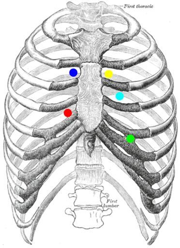 | Keywords: Heart sounds auscultation areas.svg BadSVG Heart sounds auscultation areas Colors red - tricuspid valve yellow - pulmonary valve green - mitral valve navy - aortic valve light blue - Erb's point Auskultationsorte der Herztöne auf die Thoraxwand Farben rot - Trikuspidalklappe gelb - Pulmonalklappe grün - Mitralklappe navy - Aortenklappe hellblau - Erbscher Punkt Schemat przedniej ściany klatki piersiowej z zaznaczonymi rzutami zastawek Kolory zielony - zastawka dwudzielna; czerwony - zastawka trójdzielna; niebieski - zastawka aorty; żółty - zastawka pnia płucnego; jasnoniebieski - punkt Erba Gray112 png Auskultation jpg 2011-07-03 19 33 UTC Auskultation jpg Ickle <span class signature-talk >talk</span> derivative work Vinne2 <span class signature-talk >talk</span> I pointed the areas deleted the legend to make this international and saved as SVG Vinne2 Auskultation jpg Original upload log This image is a derivative work of the following images File Gray112 png licensed with PD-Gray's Anatomy plate 2005-12-07T01 09 12Z Lipothymia 436x600 73595 Bytes <nowiki> Grays en Ribs no Ribbein</nowiki> File Auskultation jpg licensed with PD-Gray's Anatomy plate 2010-06-29T15 27 01Z Ickle 509x700 199504 Bytes <nowiki> Auskultationsorte der Herztöne auf die Thoraxwand 2010-06-29 15 23 UTC derivative work ~~~ see below RetouchedP</nowiki> Uploaded with derivativeFX SVG Gray's Anatomy plates Bones of the human rib cage Human skeletal diagrams Anatomy of the chest Heart beats Rib cage |