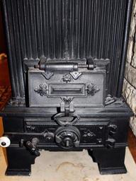 Keywords: heating oven old historically cast iron heat close up doors folding wood burning stove very old