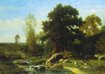 View Original:Hector_Hanoteau,_Bergère_et_son_troupeau_au_bord_du_ruisseau.jpg (640x456)